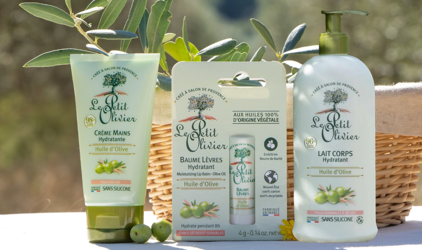 Le Rituel Soin Corps Hydratant Le Petit Olivier réunit trois soins essentiels à l’Huile d’Olive : Lait Corps, Crème Mains et Baume Lèvres. Ce trio hydrate, apaise et protège la peau au quotidien, tout en lui redonnant confort et douceur.