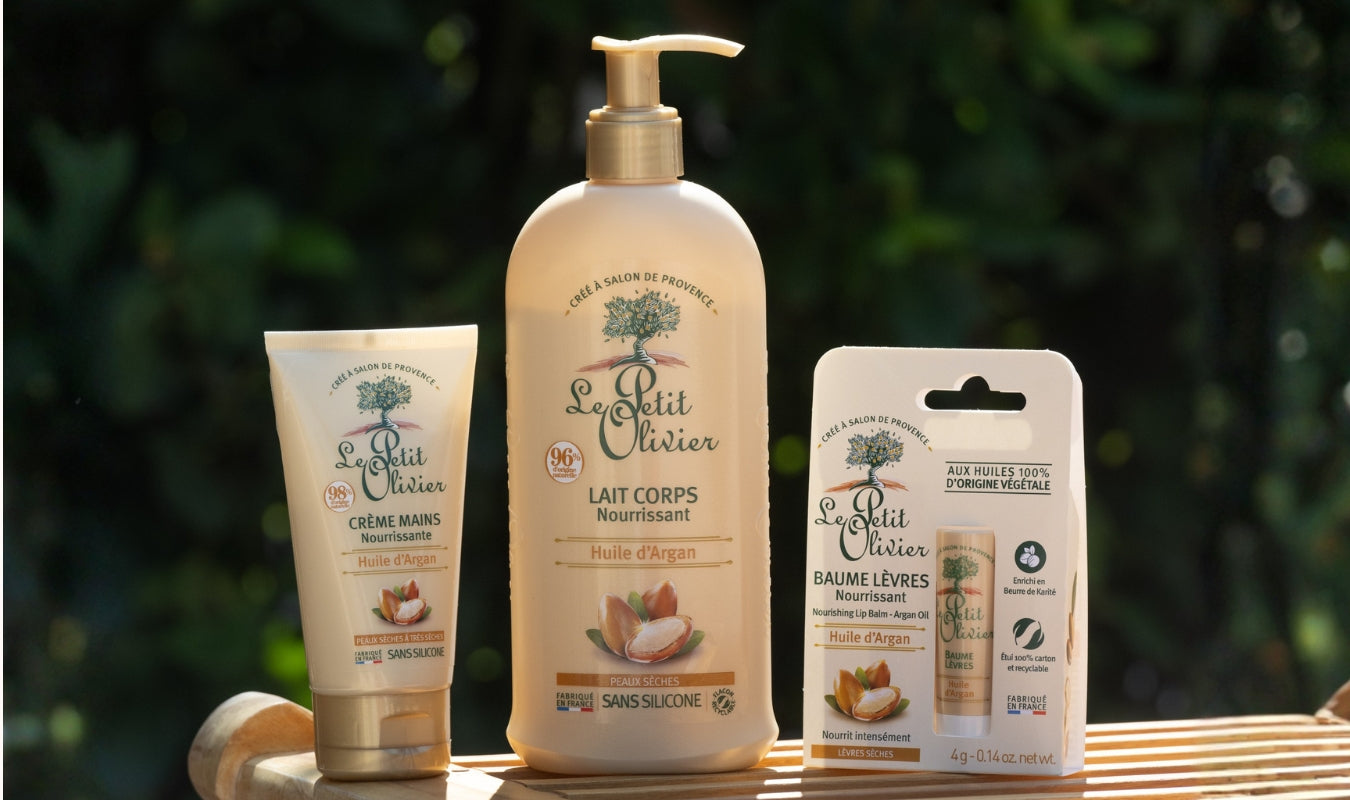 Le Rituel Soin Corps Nourrissant Le Petit Olivier associe trois soins à l’Huile d’Argan : Lait Corps, Crème Mains et Baume Lèvres. Spécialement formulés pour les peaux sèches, ils nourrissent intensément et aident à préserver douceur et souplesse.