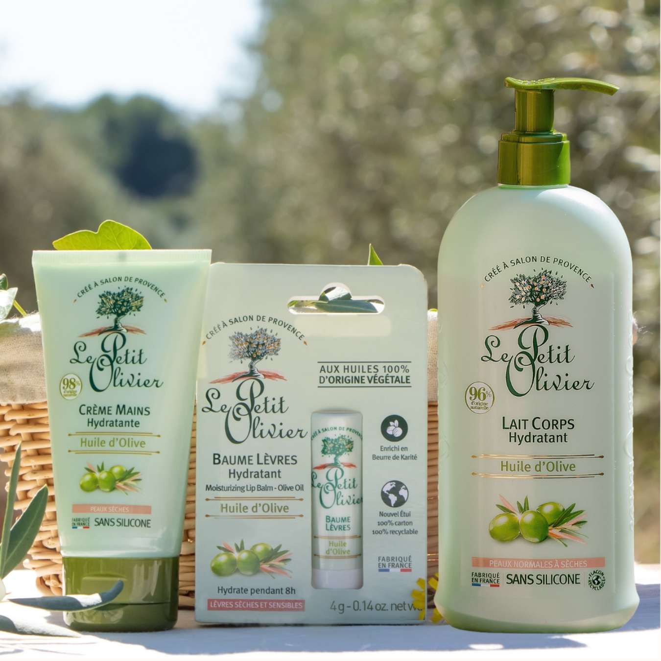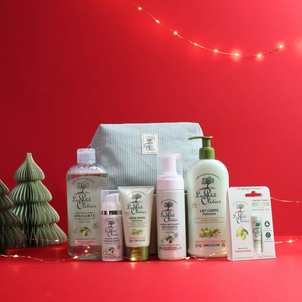 Le Rituel Soin Corps Hydratant Le Petit Olivier réunit trois soins essentiels à l’Huile d’Olive : Lait Corps, Crème Mains et Baume Lèvres. Ce trio hydrate, apaise et protège la peau au quotidien, tout en lui redonnant confort et douceur.