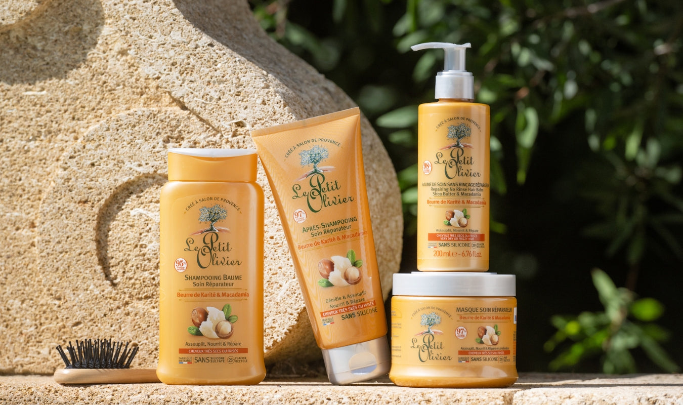 Le Rituel Soin Cheveux Complet Réparateur Le Petit Olivier regroupe quatre soins au Beurre de Karité et à l’Huile de Macadamia pour les cheveux très secs ou frisés : Shampoing Baume, Après-Shampoing, Baume Soin, Masque Soin. Ce rituel nourrit, répare et redéfinit les boucles.