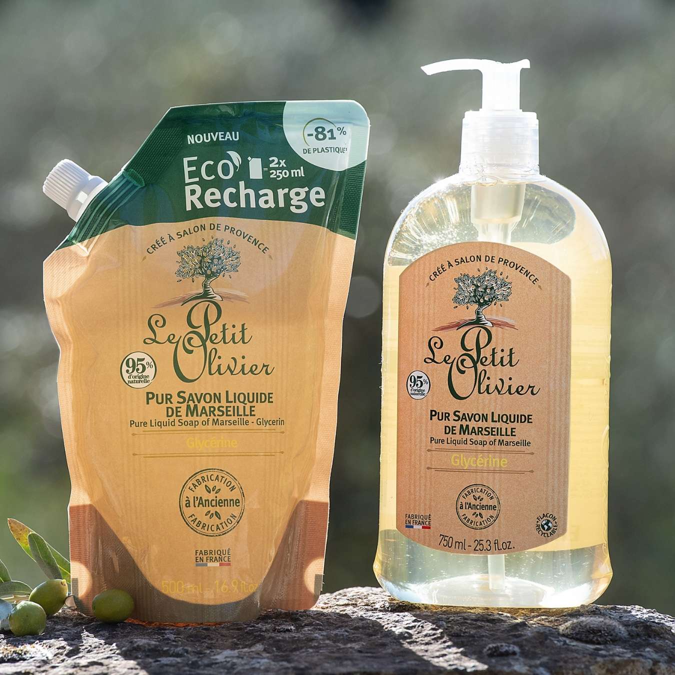 Le Duo Savon Liquide & Recharge Le Petit Olivier associe un Pur Savon Liquide de Marseille et son Eco-Recharge à la Glycérine. Fabriqué selon le savoir-faire ancestral des Maîtres Savonniers, ce savon cuit au chaudron nettoie en douceur tout en hydratant la peau.