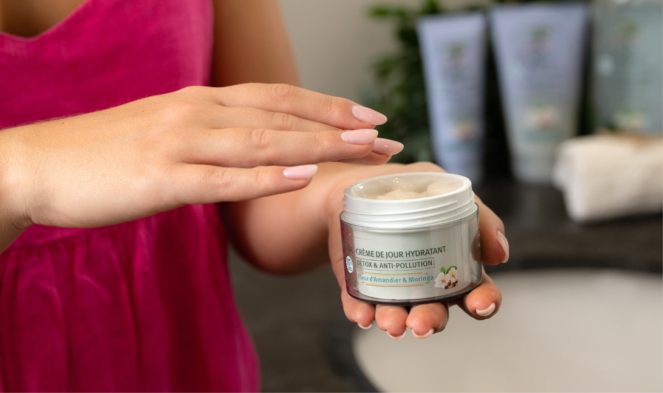 Le Gel-Crème de Jour Hydratant Le Petit Olivier hydrate la peau tout en la protégeant des agressions extérieures. Sa formule sans silicone, enrichie en extraits de Fleur d’Amandier et de Moringa, limite l’adhésion des particules de pollution. Sa texture légère apporte fraîcheur et confort au quotidien.