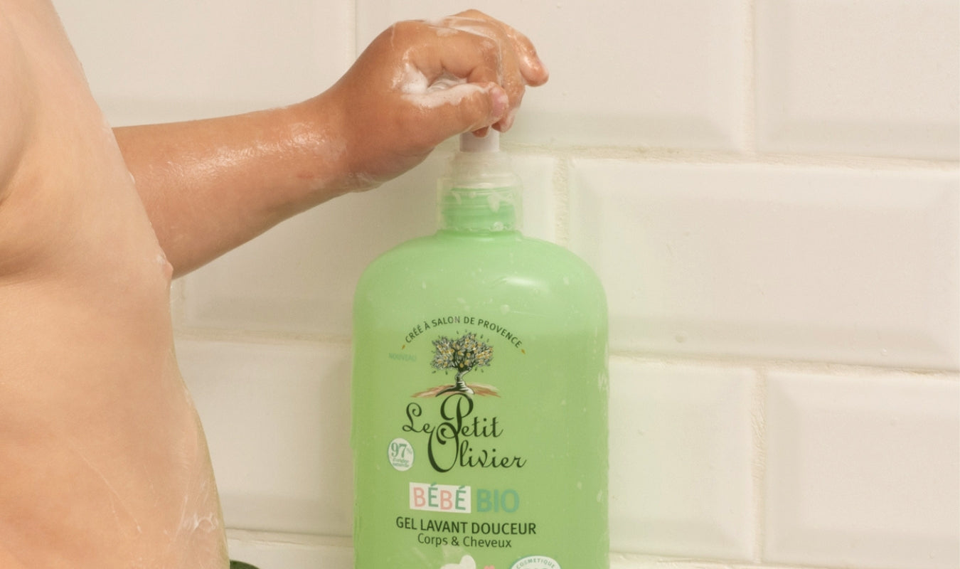 Aux extraits d’Olive et d’Amande Douce bio de Provence, le Gel Lavant Douceur Bébé Bio Le Petit Olivier nettoie en douceur la peau sensible et les cheveux délicats de bébé, dès la naissance. Sa formule certifiée BIO par Ecocert, sans savon, sans colorant, sans sulfate, au pH neutre et qui ne pique pas les yeux, respecte la peau fragile des tout-petits et laisse un parfum doux et enveloppant.