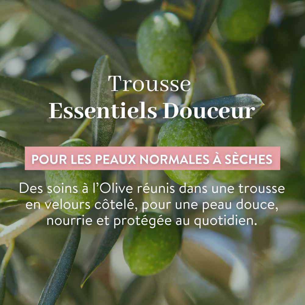 Pour des fêtes placées sous le signe du plaisir et de la beauté, offrez la Trousse d’Essentiels Douceur Le Petit Olivier. Parée de sa jolie trousse en velours, elle réunit tout le nécessaire pour hydrater et apaiser la peau du visage et du corps, la trousse comprend :