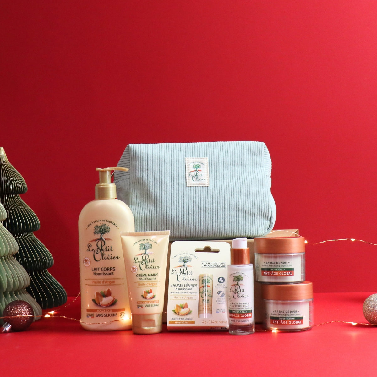 Pour un Noël empreint de douceur et de naturalité, offrez la Trousse d’Essentiels Nourrissants Le Petit Olivier. Présentée dans sa jolie trousse en velours côtelé, elle renferme un rituel complet pour nourrir et sublimer la peau du visage et du corps. Un cadeau chaleureux et raffiné, idéal pour choyer vos proches au cœur de la magie des fêtes.